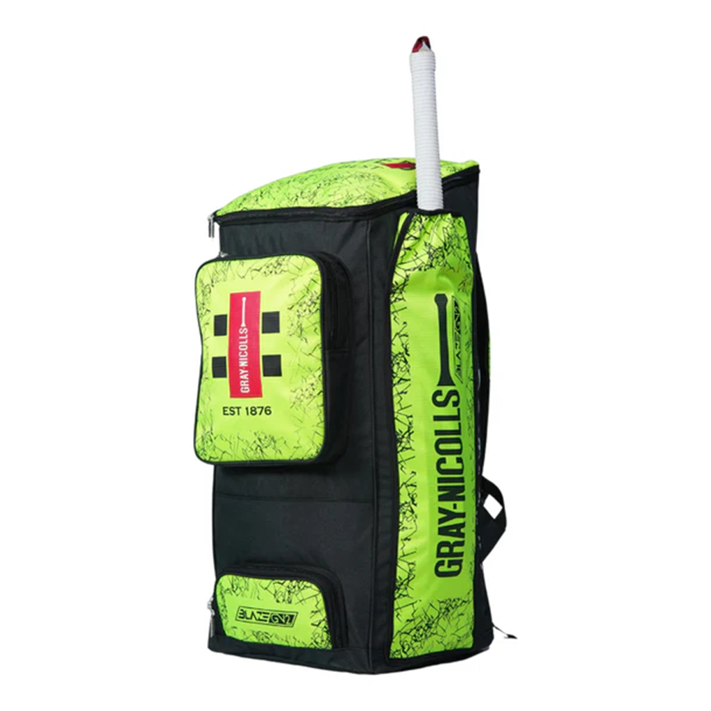 The Gray-Nicolls Duffle Blaze Kitbag is a versatile cricket backpack designed for junior players, featuring an external bat sleeve, spacious compartments, and adjustable padded shoulder straps for maximum comfort. With dimensions of 72cm x 30cm x 30cm, it offers ample storage for all your cricket essentials.