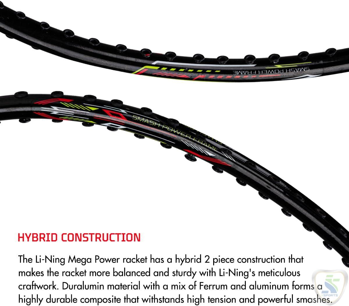 - The Li-Ning Mega Power is a gun racket for all badminton lovers. Engineered with a Smash Power Frame and High Tech Slim Shaft, this racket improves your hitting velocity considerably and balances the rebound and anti-torsion performance. In addition, the Mega Power racket is a head-heavy racket with a more prominent sweet spot to enable you to smash and defend seamlessly. This racket has a hybrid duralumin body and head. Therefore, this racket would be an ideal fit for those just getting started or exploring the game.