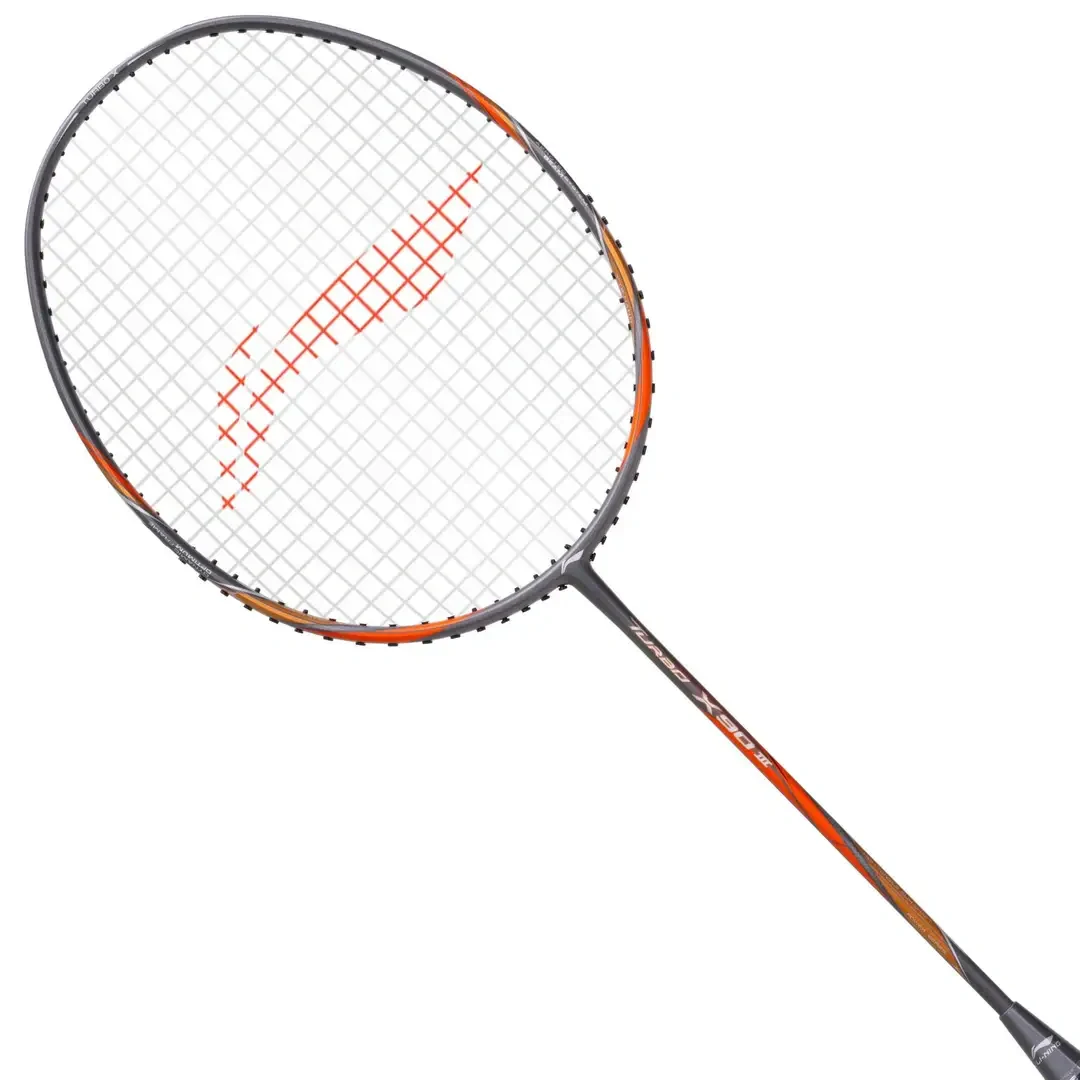 Li-Ning Turbo X III is a riptide that amplifies your turbulent power like the currents of the sea. Its dynamically optimized head-heavy frame and binding technology give you powerful strikes and faster swings like a strong rip current that flows outwards from the source, causing a disturbance with every hit and strike. Comes STRUNG.